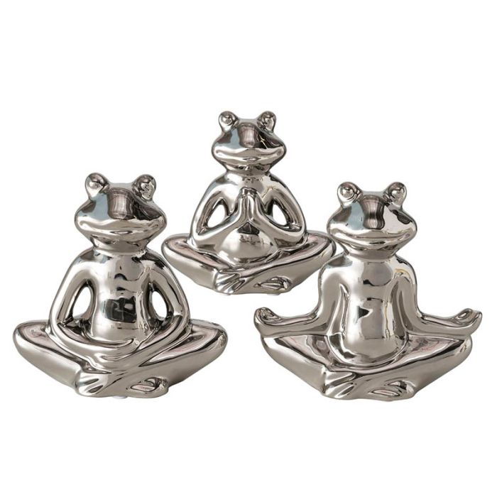 Få harmoni i dit hjem med vores trio af charmerende Yoga Frøer i sølvlook. Disse 3 frøer er mere end blot dekorative elementer - de symboliserer ro, balance og indre styrke. Tilføj en legende touch til din indretning og lade disse elegante frøer sprede positiv energi i dit rum. Perfekte som en gave eller til at skabe et fredfyldt hjørne i dit hjem