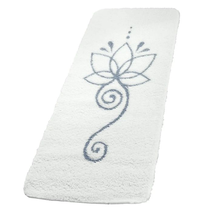 Som motiv finder du lotusblomsten på yogamåtten. Lotusen, eller den hellige blomst, symboliserer renhed, selvindsigt og oplysning. Denne helt specielle yogamåtte vil helt sikkert bringe dig megen glæde i hver yogasession.